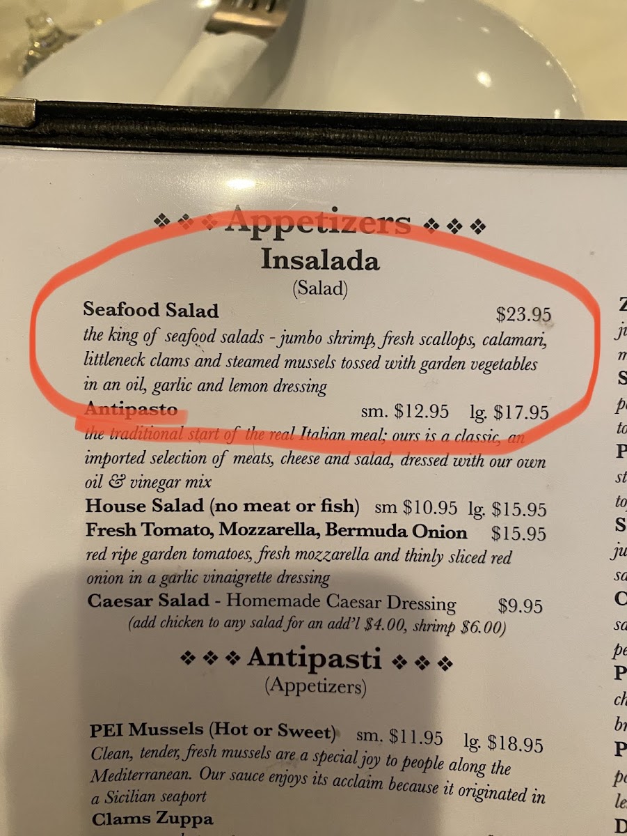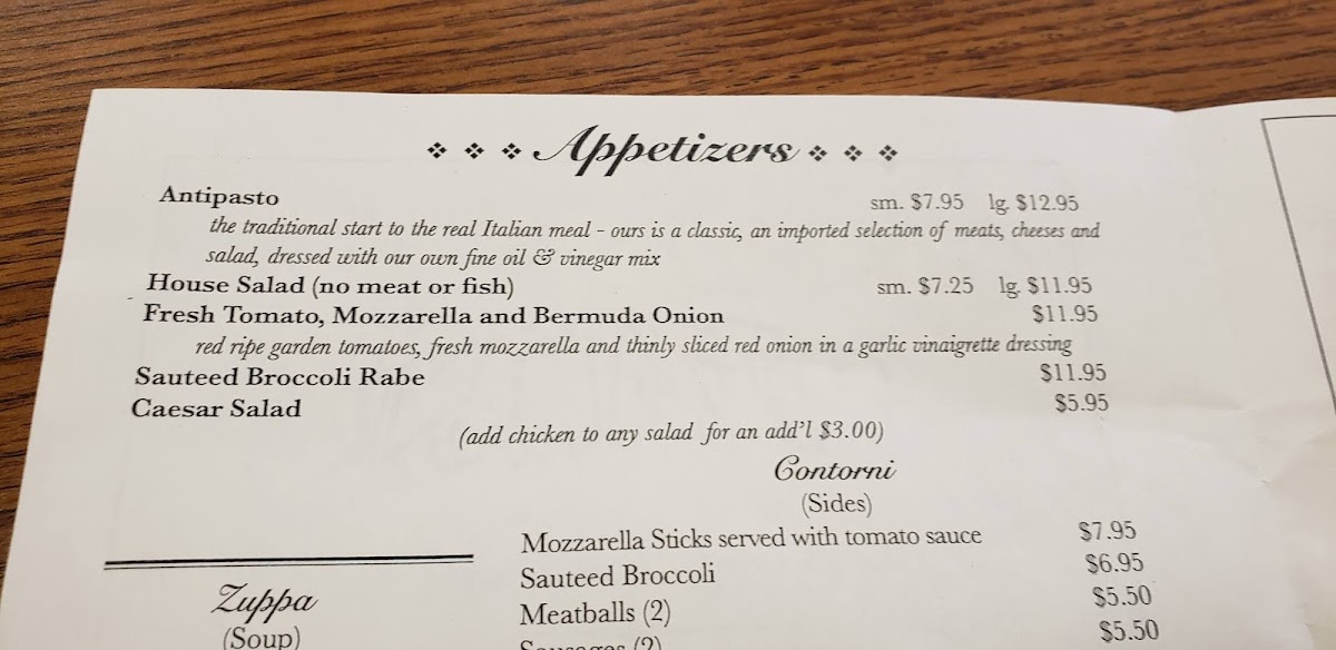 The traditional start of the real Italian meal; ours is a classic, an imported selection of meats, cheese, and salad, dressed with our own oil & vinegar mix.